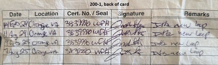 Below is the main parachute data panel showing it's manufacture date and serial number: